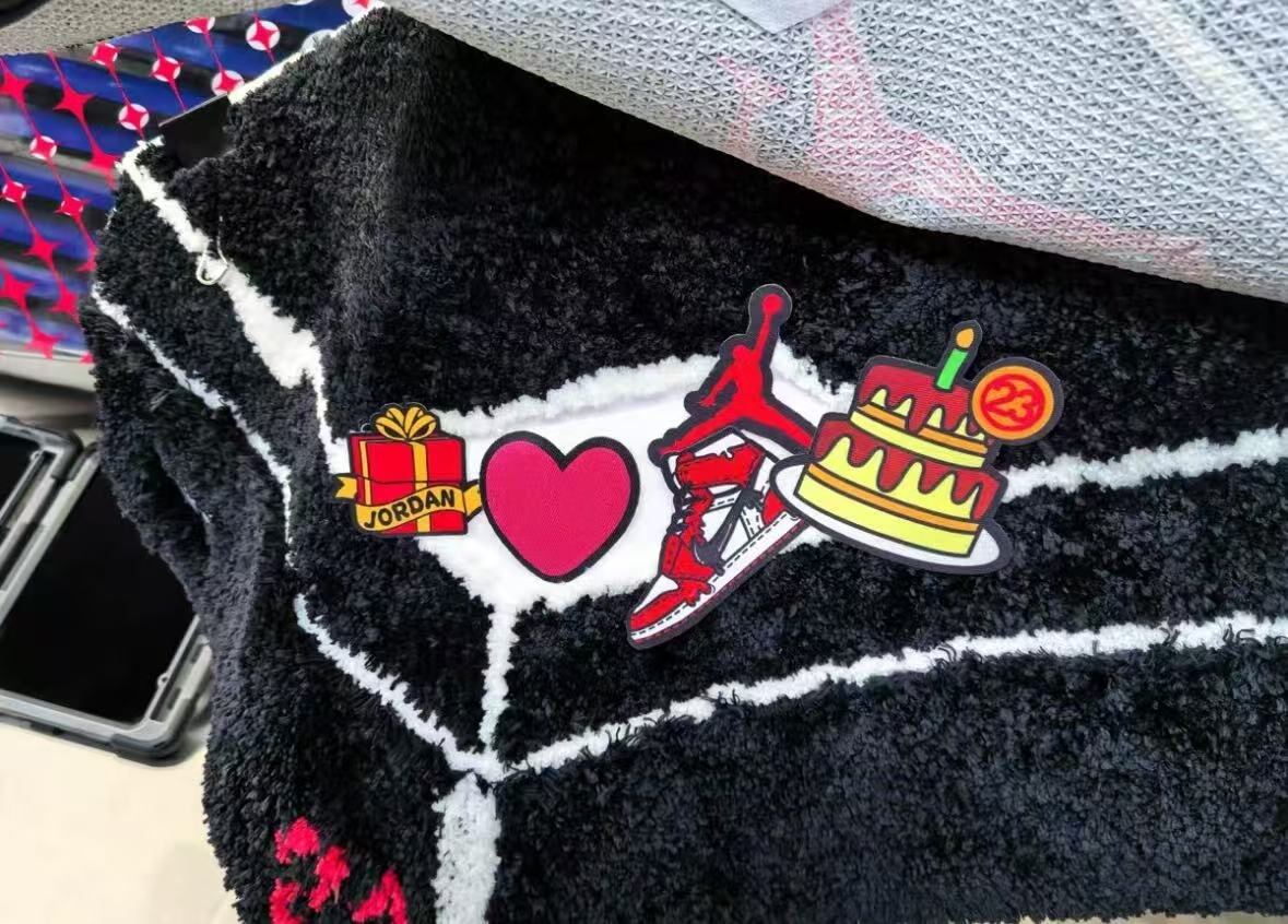 今回のワッペンは誕生日を祝うケーキとプレゼントボックスとオフホワイト のJORDAN1。